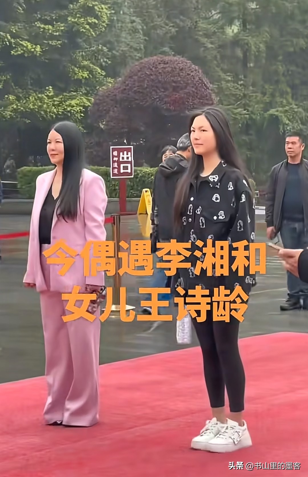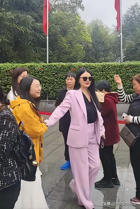 大老远一看,现场的氛围庄重肃穆,周围人大多素衣简装,李湘却一身粉色休闲西装,搭配黑长直与墨镜,在人群里格外扎眼。