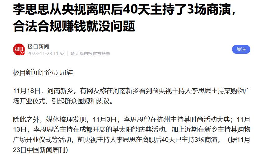 可实际上,这些猜测,都只是外界的片面解读,他们只看到了李思思离开央视后的风光,却没有看到她真正的追求。