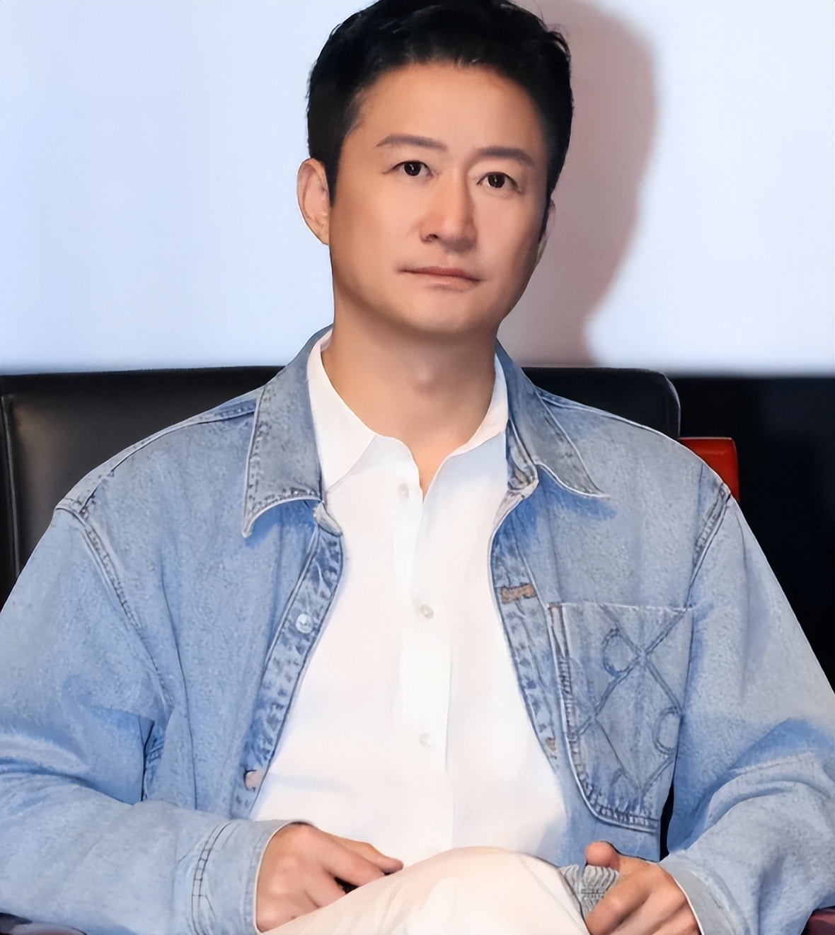 其身穿白色衬衣外搭牛仔外套,或许是最近活动太多,略显疲惫。