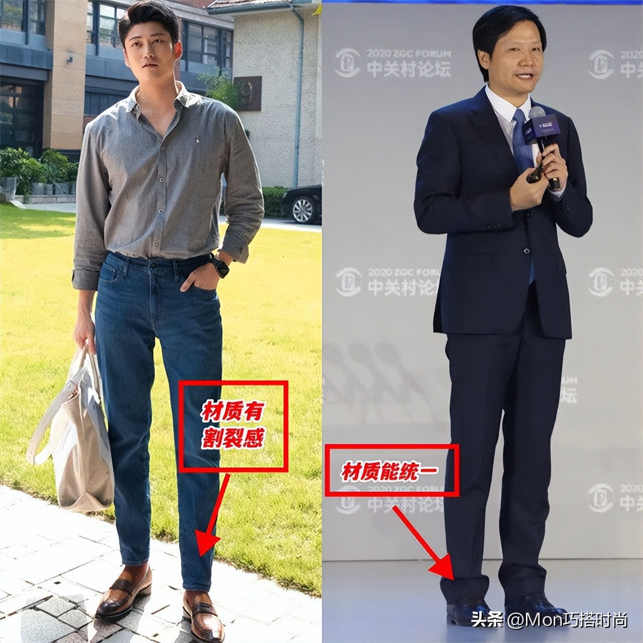 看了雷军的搭配,大家发现了吧,他的气质这么出众靠的不是衣服多贵,而是抓住了 反油腻的核心,穿皮鞋的时候不配白袜子,不强行把上衣塞进裤腰里,穿得舒服自然还大方,再靠面料、版型、配色诠释出高级感,轻轻松松拿捏好气质。
