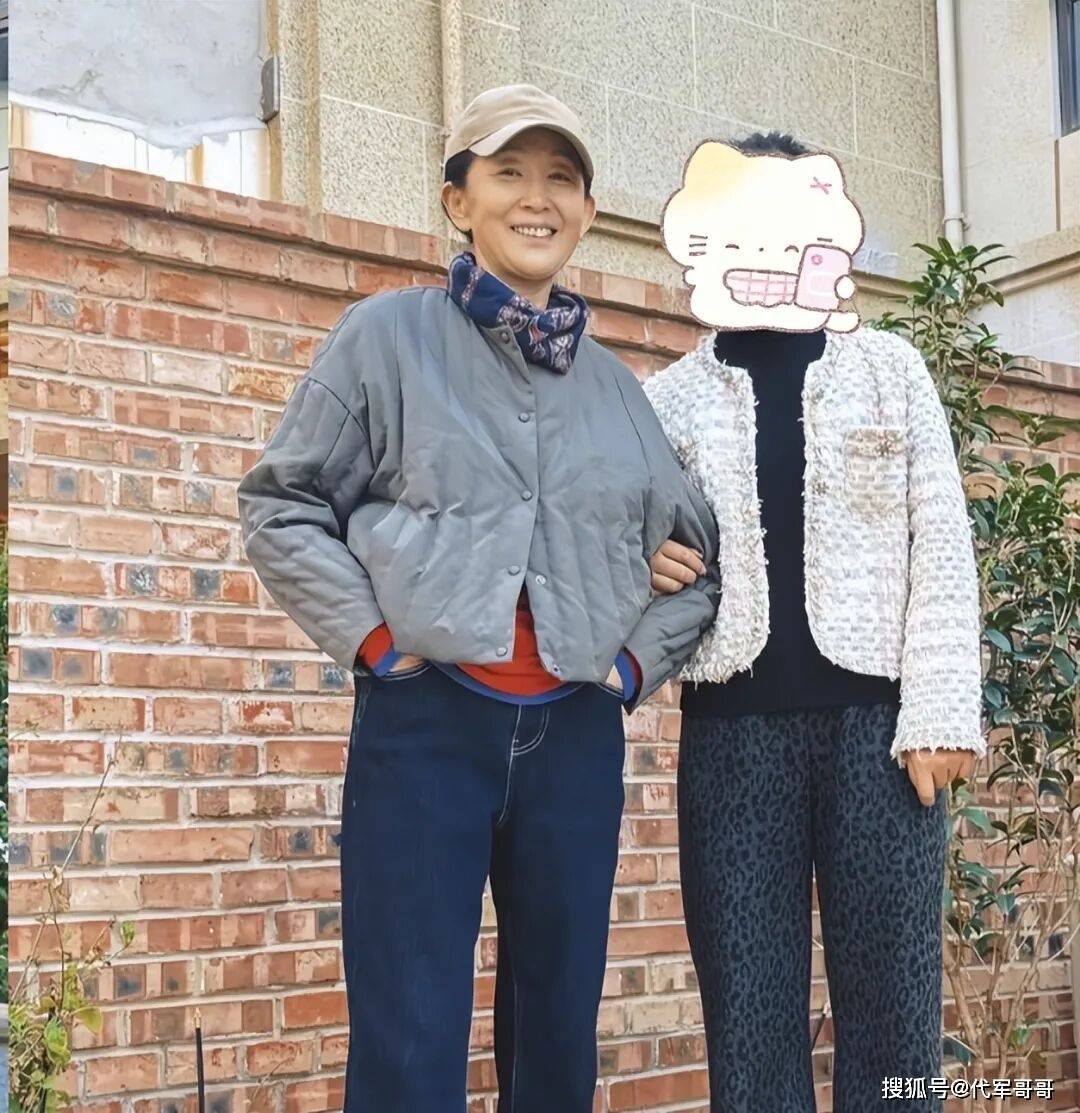 一旁的陈瑾则头戴卡其色鸭舌帽,内搭红色毛衣,外披薄外套,脖子上系着丝巾点缀,下搭牛仔裤与高跟鞋,170cm的身高在人群中十分显眼,即便年过花甲,皮肤依旧紧致、身材苗条,举手投足间满是优雅气质。面对网友的合影请求,陈瑾欣然应允,还亲切地让网友挽住自己的胳膊,全程笑容温和,丝毫没有距离感,两人合影时默契地一同将手插在裤兜里,相处细节里满是多年相伴的熟稔。