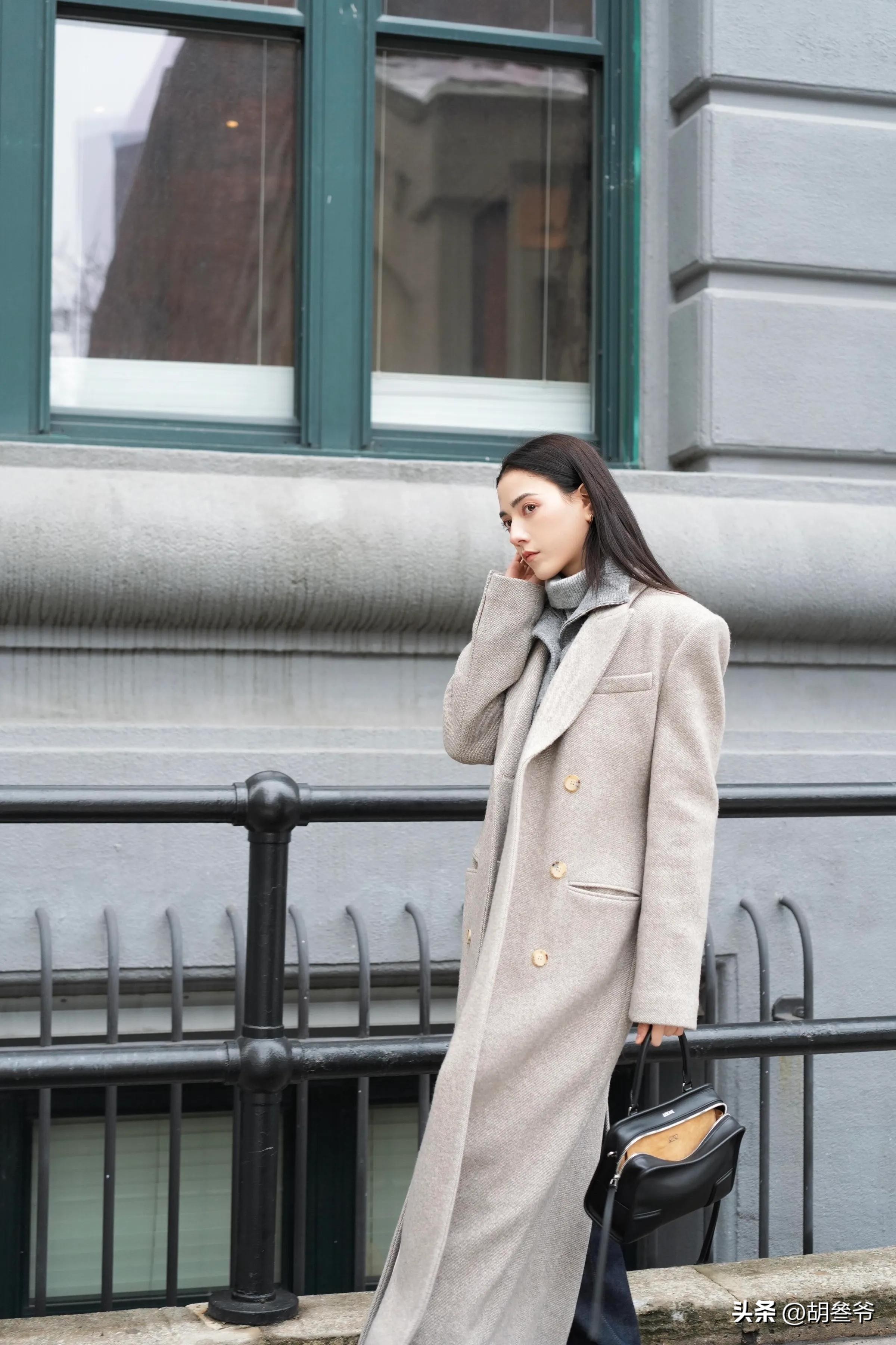 而且这件灰色大衣娜然穿了好几次,纽约工作时搭灰色高领毛衣,和霍启山约会时配红色羊毛衫,一件衣服穿出两种风格。