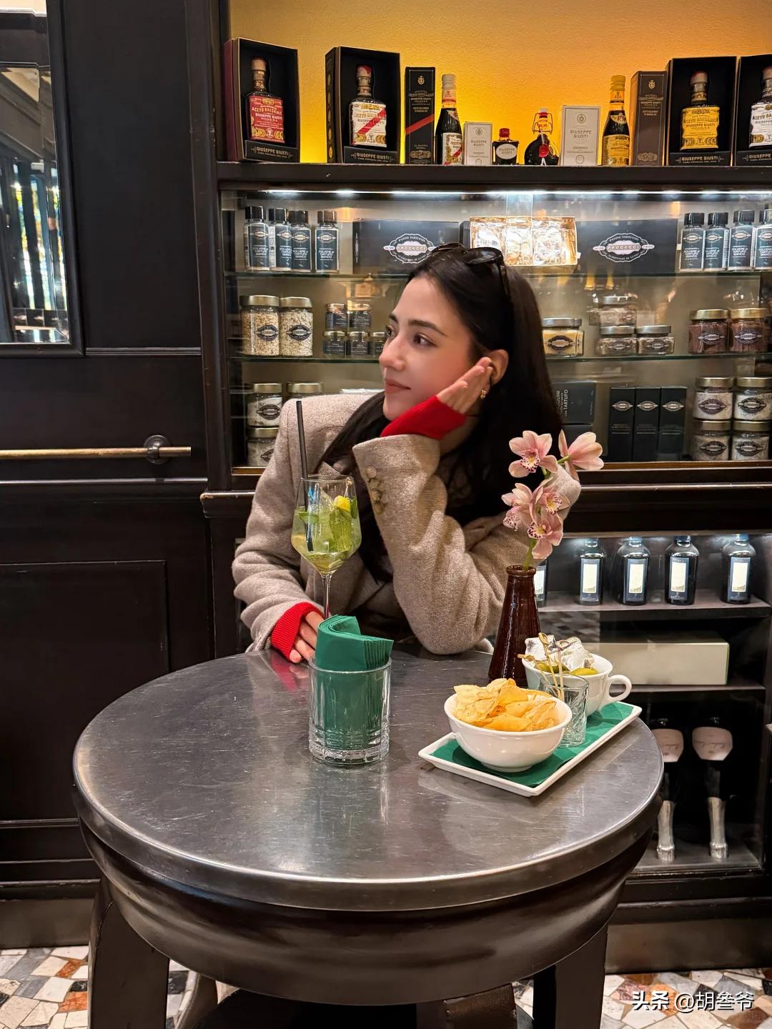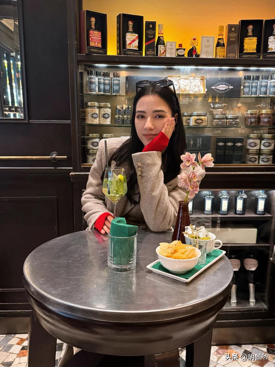更有意思的是,娜然晒出的夕阳露台照,背景是意大利经典建筑,她围着那条草绿色围巾,眼神温柔得能滴出水来,完全是沉浸在爱情里的模样。