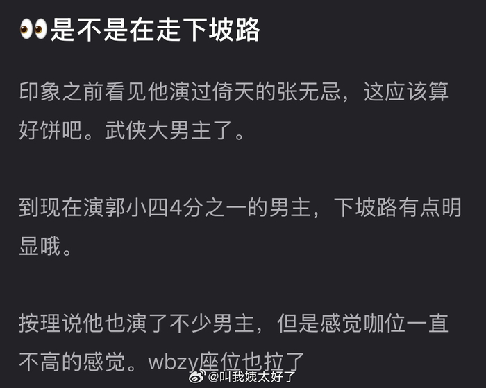 曾舜晞是不是在走下坡路?之前看演过倚天的张无忌,属于武侠大男主了现在演郭小四4分之一的男主,下坡路有点明显了吧?