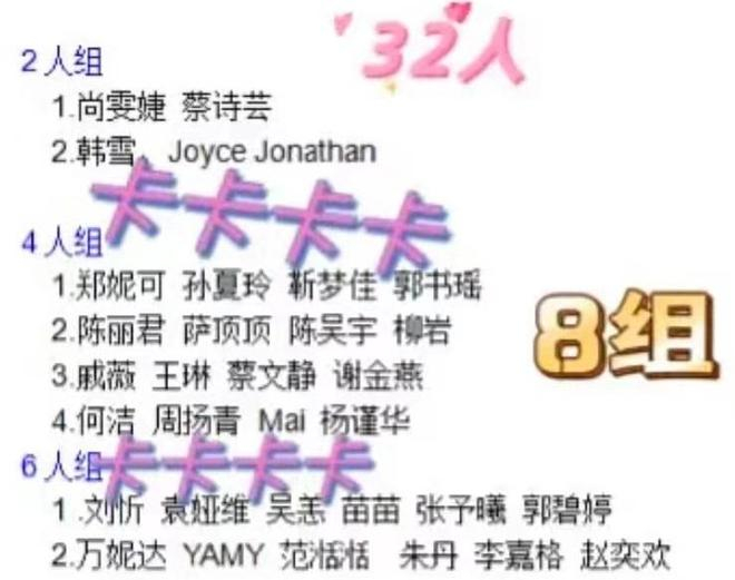值得一提的是,参与二公的本应有33人,但瓜主曝出的分组名单只有32人,缺席的那个人是俄罗斯姐姐mari,被爆料是她承受不了录制强度所以退赛了。
