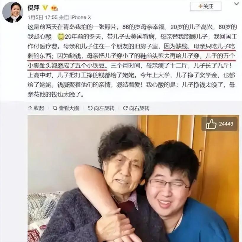 但更让倪萍没想到的是,当她在异国他乡抱着病儿挣扎求生时,国内舆论已经开始酝酿一场长达20年的"渣男"审判。