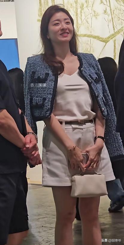 手里拎着一个小巧又精致的名牌手包,妆容画得清透又精致,一点不浮夸,笑起来还是当年在TVB时那种甜甜的少女感,跟退圈前几乎没差。