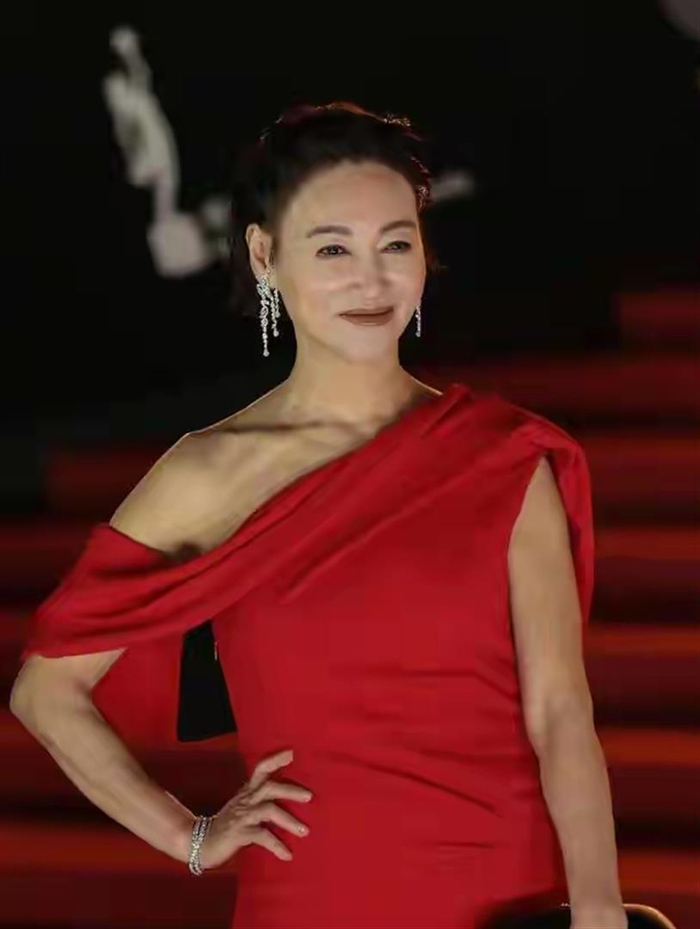 压轴登场的惠英红穿了一身特别定制的正红色缎面礼服。斜肩设计,贴身剪裁,65岁的她身材保持得惊人。面对镜头时她笑着说:“名字里有红,今天也想红一把。”她这次凭电影《水饺皇后》入围了最佳女配角。从第一届金像奖走到第四十四届,她是这条红毯上真正的常青树。