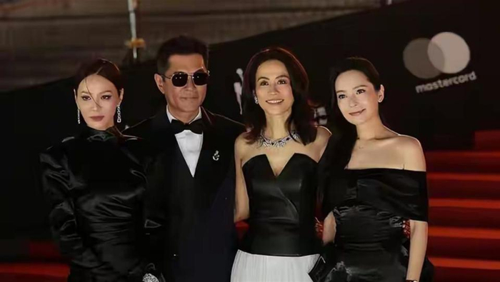 古天乐和宣萱也一起走上了红毯。55岁的古天乐状态很好,在镜头前玩得很开,甚至对着三位女星隔空做出亲吻的动作。宣萱轻挽着他的手臂,动作自然又默契。这对被称为“港剧天花板CP”的组合,时隔25年再度同框。他们合作的电视剧《寻秦记》是很多人的童年回忆。